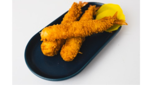 Bowl z ryżem sushi, krewetkami w panko (3szt), ananasem, marchewką, kiełkami mung, paskami nori, ogórkiem, dymką i sezamem.